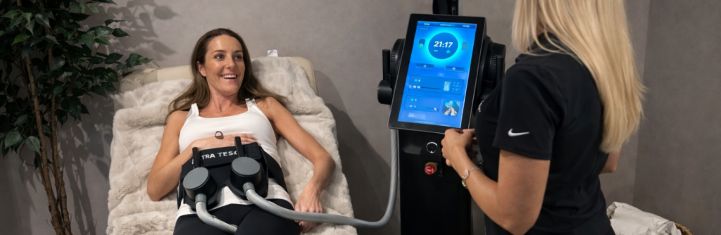 The treatment delivers high-intensity electromagnetic energy to the targeted muscles, causing thousands of supramaximal contractions during a single session. These contractions stimulate muscle fibres in a way that traditional exercise alone cannot, encouraging increased muscle tone and strength over time.